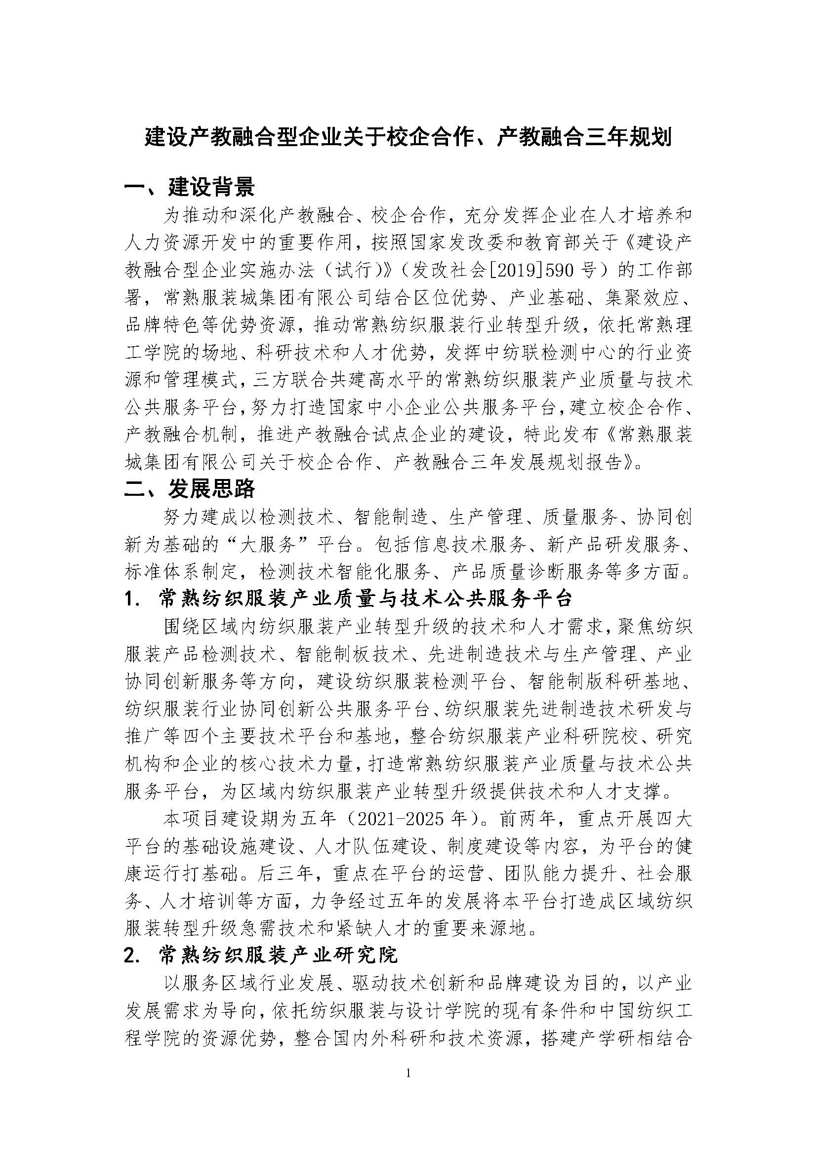 建設產教融合型企業關于校企合作、產教融合三年發展規劃報告